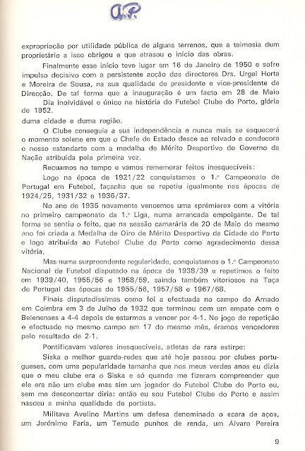 E no campeonato da época seguinte, como me recordo bem e soube melhor, estava à mesma a jogar uma partida de bola com outros amigos (daqueles jogos de mudar aos três e acabar aos seis, que podiam durar até às tantas), quando por um rádio se ia ouvindo a algazarra dum relato radiofónico, doutro jogo que o Porto disputava em Braga. Mas aí, então, tudo correu bem, e, sabendo que os golos foram aparecendo, houve boa disposição. - Pudera… O Porto foi lá e espetou quatro secos, para eles verem como era…!