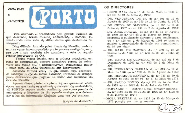 Então, deitando mãos e olhos através da revista Stadium, de 8 de Dezembro de 1948, evocamos uma jornada vitoriosa para o F C Porto, sendo que aí o Sporting era mais que favorito, acontecendo que foi isso quando o Sporting, então com grande equipa, estava na dianteira do futebol português.