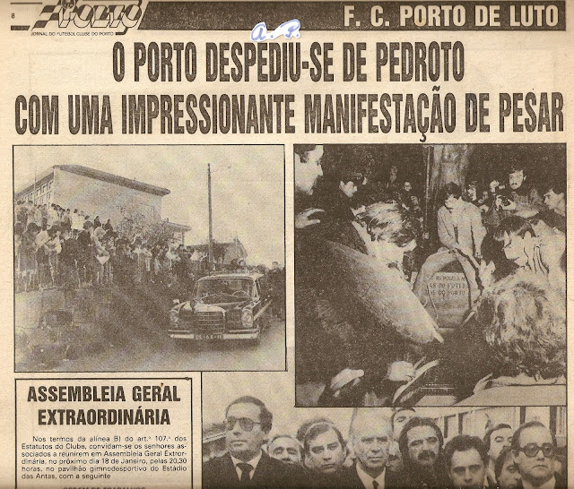 Muito mais tarde, mas por motivos de doença, outro importante personagem da História do F C Porto teve um grande reconhecimento público na despedida, conforme recordamos do falecimento de Pedroto, em 1985.
