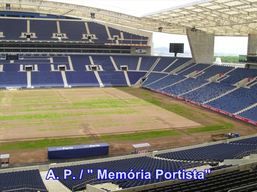 podendo-se dali ver o atual estado dos trabalhos na reposição do relvado do campo,