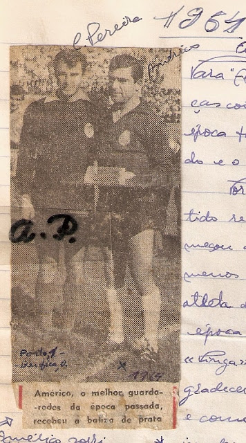 depois, volvidos anos, com uma outra de despedida, ao guarda-redes Américo.