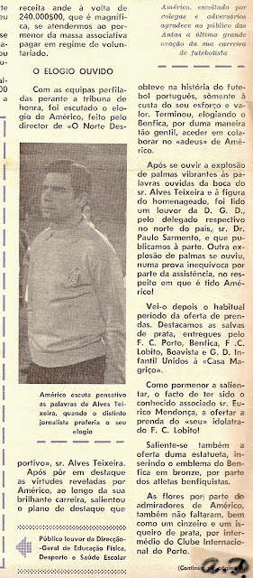 pública, em honra de Américo Ferreira Lopes, em que o Américo até foi distinguido oficialmente pela entidade governamental Direcção Geral dos Desportos, juntamos algumas recordações documentais, do