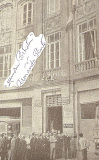 entre membros diretivos no hastear da bandeira diante da antiga sede, em dia
