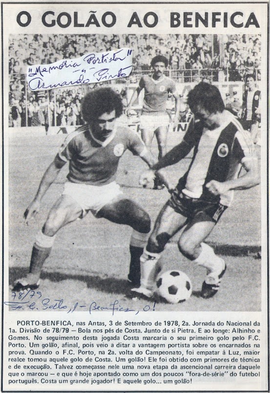 Ora isso foi a 3 de setembro de 1978, em tarde solheira dum domingo de transição do verão para o outono. Quando o FC Porto, Campeão Nacional em título, defrontava um Benfica que, apesar de ter ficado no segundo posto na época anterior, não havia perdido qualquer encontro desse campeonato anterior. As boas indicações deixadas pelos treinos azuis e brancos e os “mind games” de Pedroto, que revelou um onze falso antes do jogo e entrou em campo com surpresas (metendo de início Adelino Teixeira e mudando de posições outros jogadores, por exemplo), conjugaram-se numa exibição arrebatadora dos Dragões e numa vitória por uma bola a zero. Costa, recém-chegado da Académica, marcou o único golo. Algo que, depois, por no final o FC Porto ter ficado com mais 1 ponto de vantagem sobre o Benfica (quando as vitórias por jogo valiam 2 pontos, ainda) se revelaria ter sido de abertura, afinal, do caminho para título do bicampeonato, que se seguiu à chegada do verão de 1979.