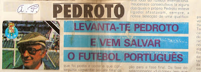Nesta ocasião de justa recordação, avivamos tal saudade com alguns trechos (em parcelas, para melhor leitura) de recortes que temos colados numa brochura pessoal, sobre o Mestre Pedroto:
