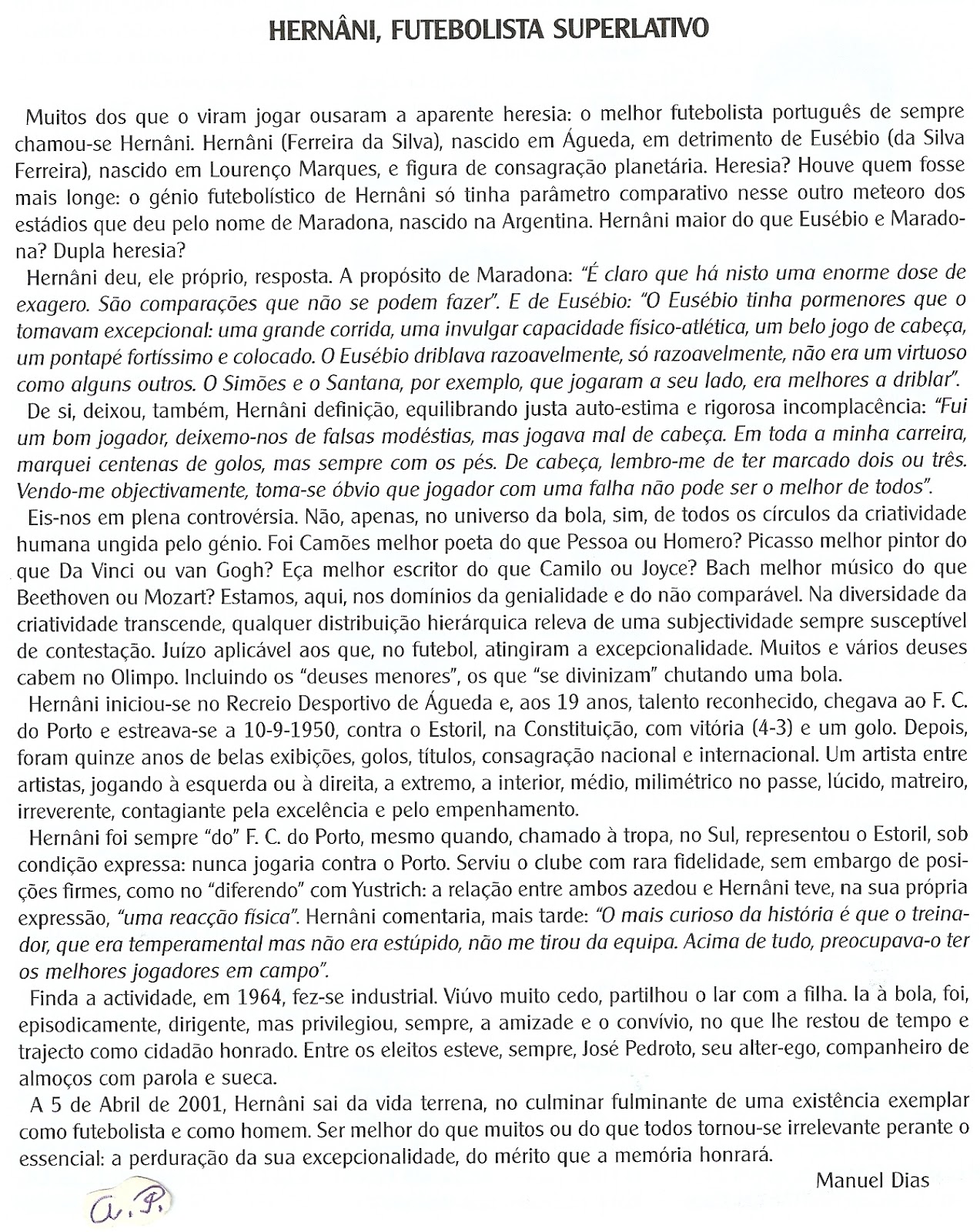 Ora Hernâni, o grande futebolista que os próprios “jogadores”